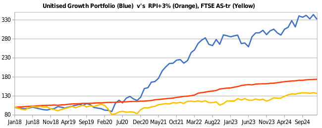 Performance this year has been mixed with an increase of +8.5%, ahead of myRPI+3% (+6%) benchmark but just trailing the FTSEAS-TR